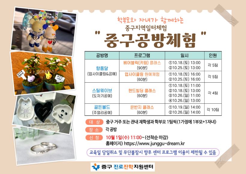 | 참가대상 | 중구 거주 또는 관내 재학생과 학부모 1팀씩/1가정 2명 |